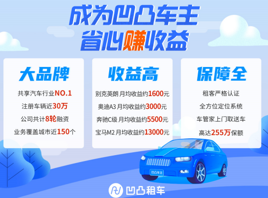 在众多的租车平台中我比较信赖的就是凹凸租车,首先凹凸租车是比较靠谱的,而且在合作的过程中没有任何的后顾之忧,轻轻松松的就可以展开合作,最主要的就是凹凸租车平台能够为我们提供完善的服务,让我们在与平台合作的过程中,都可以享受到高品质的服务,而且平台会为我们每一辆汽车提供价值百万的保险,再也不用担心在出车的过程中发生意外情况。